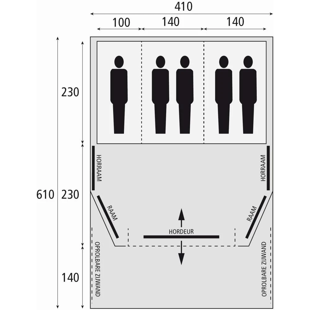 - Mogelijkheid tot extra luifel met meegeleverde tentstokken
