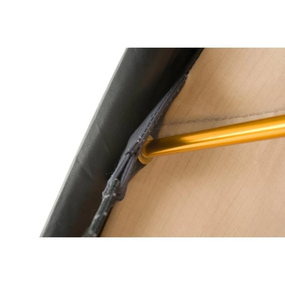 De Spitfire 340 XL RSTC Deluxe heeft een Variosysteem in de gordijnen zitten. Dit zorgt ervoor dat de gordijnen traploos verduisteren. Ook hebben ze een perfecte afsluiting door middel van ritsen. Het Oxford polyester kuipgrondzeil kan je eenvoudig neerklappen en vastzetten met ritssluitingen. Hierdoor struikel je niet telkens bij binnenkomst of wanneer je vanuit de tent naar buiten loopt.