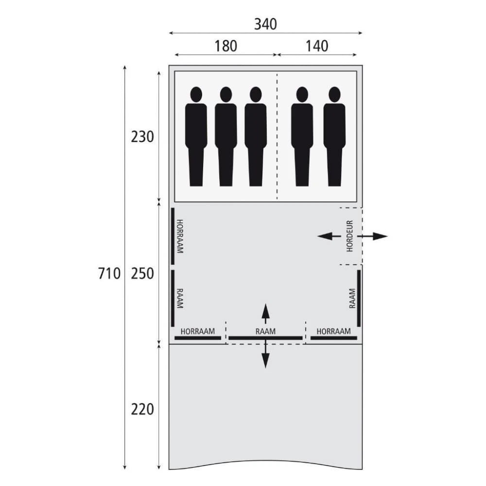 - Volledig horrengaasdeur en achterzijde binnentent