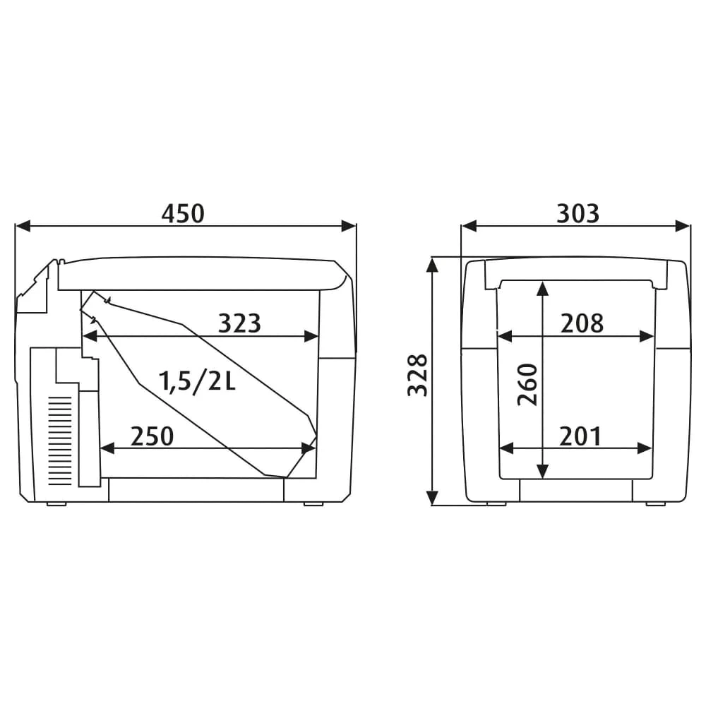 - De koelbox heeft 13,5L aan inhoud