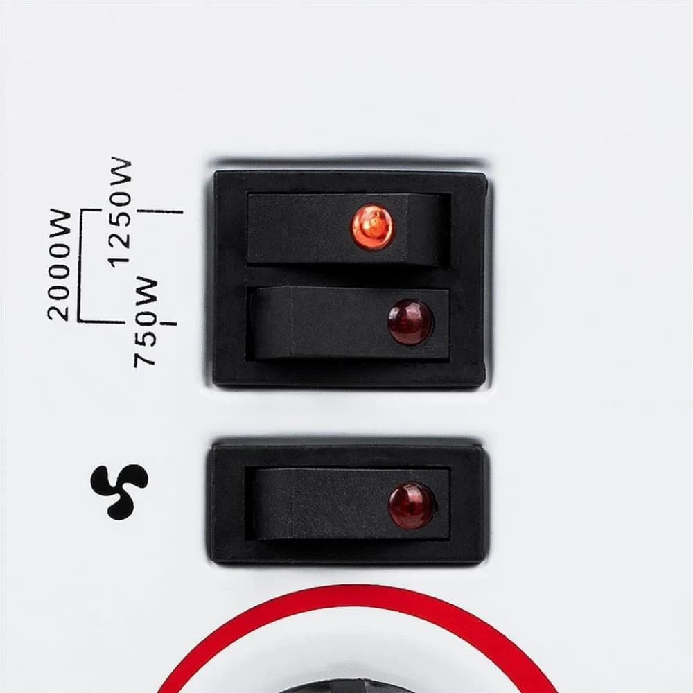 Met de schakelaars aan de zijkant kan je ervoor kiezen om te verwarmen met 750 Watt of 1250 Watt. Zet je beide schakelaars om dan heeft de convectorkachel een vermogen van 2000 Watt.